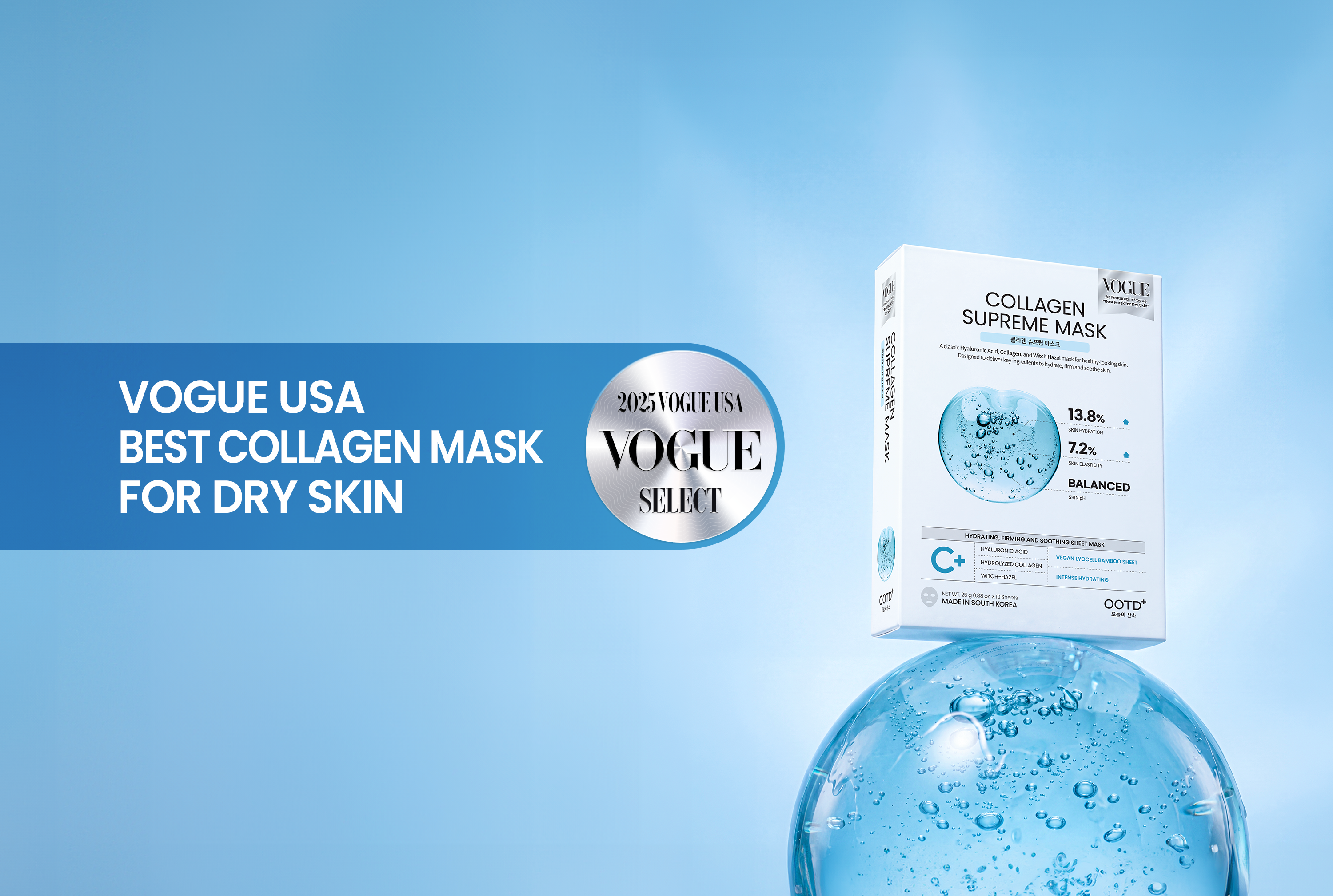 A classic collagen supreme mask for face with a mixture of active ingredients of collagen, hyaluronic Acid, and witch-hazel for overall skin care.